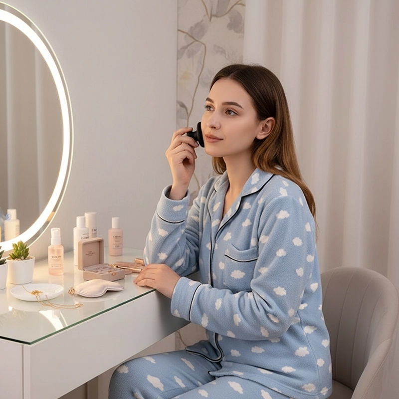 Încălzesc rola de piatră în fiecare seară și îmi topește stresul de peste zi. Obrajii mei sunt atât de catifelați și maxilarul meu e mai relaxat ca niciodată.