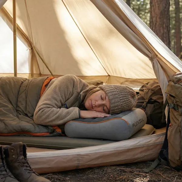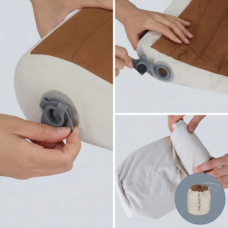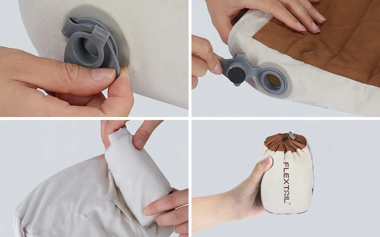 Îmi place cât de mic se împachetează această pernă pentru camping. Super ușor de umflat și suportul pentru gât mi-a făcut somnul în aer liber mult mai confortabil.