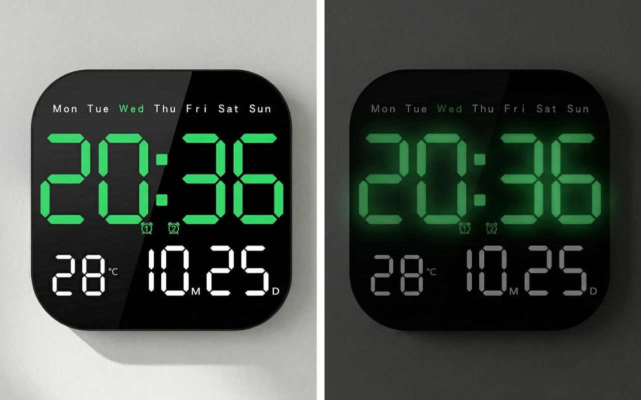 Citește rapid cifrele de la distanță, chiar și în încăperi aglomerate. Alege dintre zece niveluri de luminozitate pentru zi, seară sau somn.