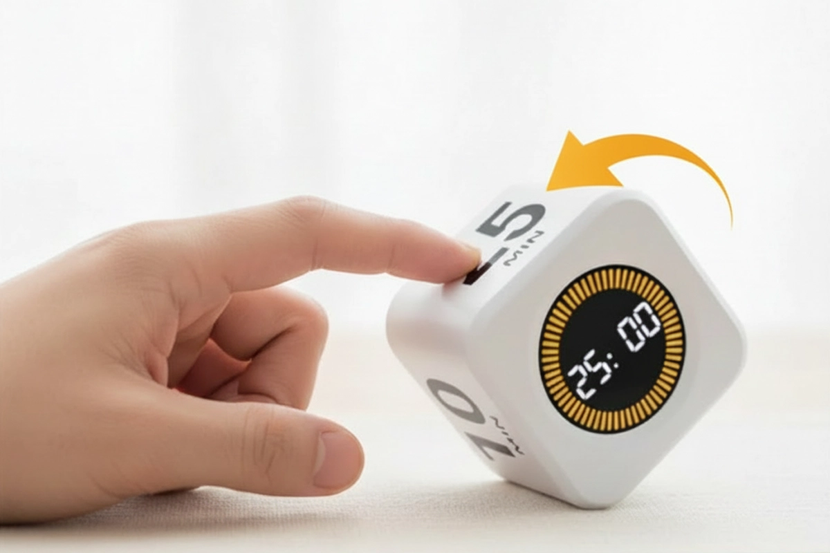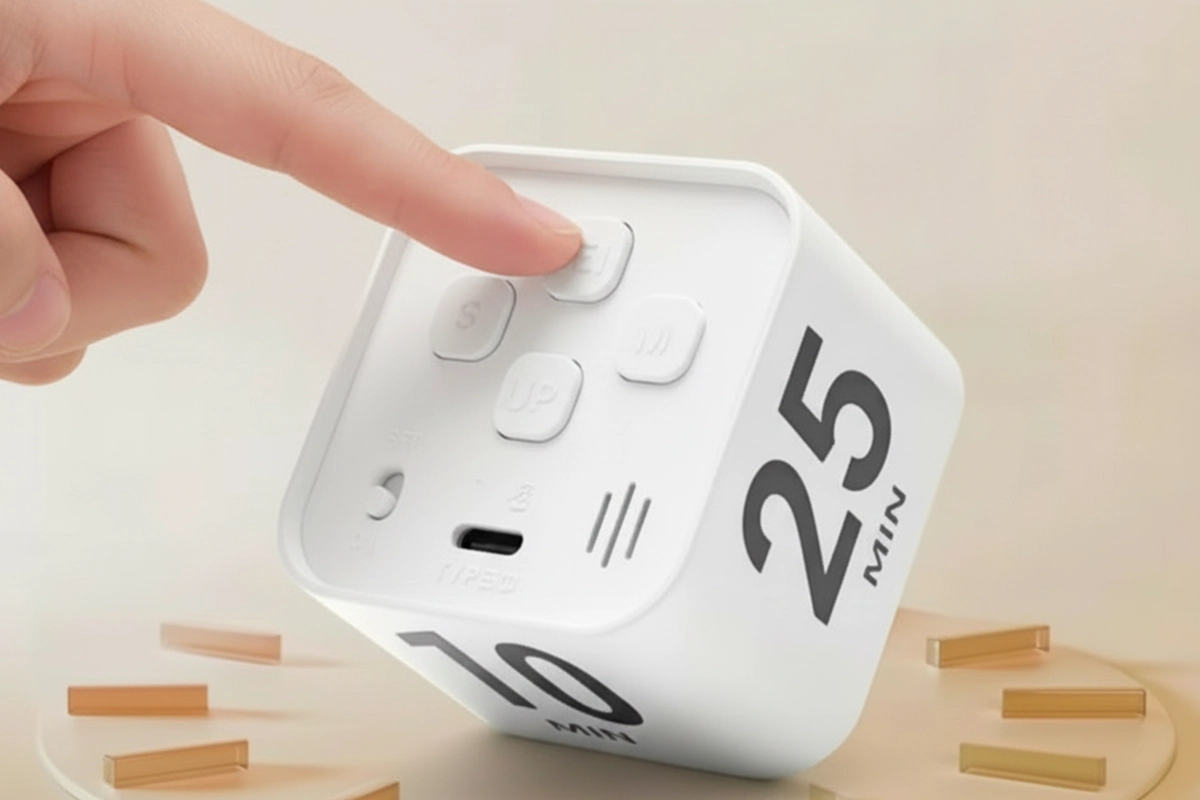 Acest cub temporizator îmi face programul mai lin. Preseturile sunt perfecte pentru obiceiurile zilnice, iar LED-ul este mereu vizibil, oriunde îl pun.