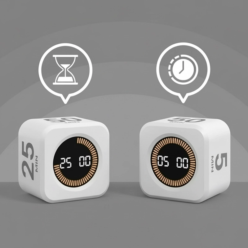 Acest cub temporizator îmi face programul mai lin. Preseturile sunt perfecte pentru obiceiurile zilnice, iar LED-ul este mereu vizibil, oriunde îl pun.