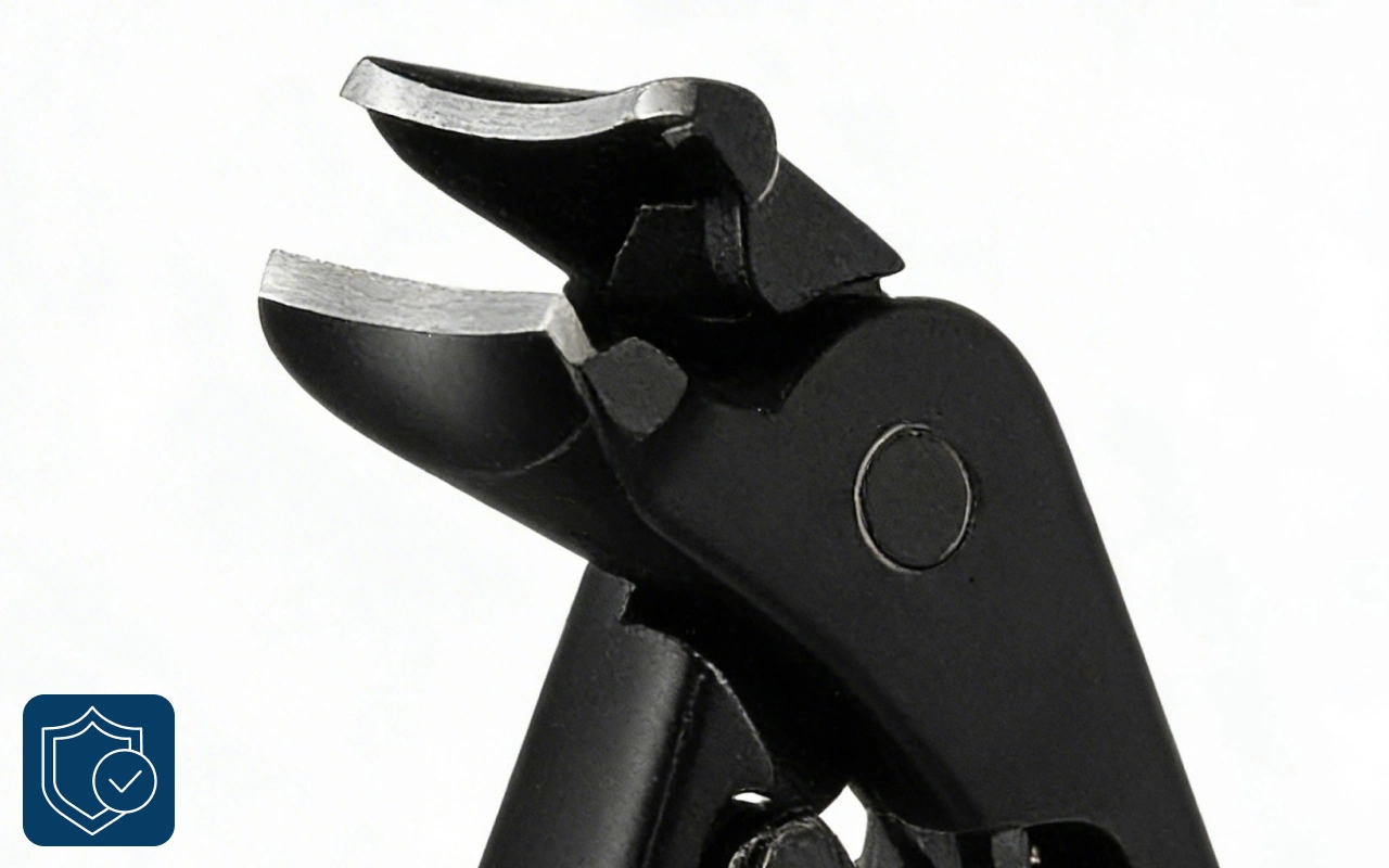 Fălcile din oțel inoxidabil prind ferm pentru tăieturi curate. Vârful curbat ajunge în colțuri unde alte instrumente nu pot pătrunde.