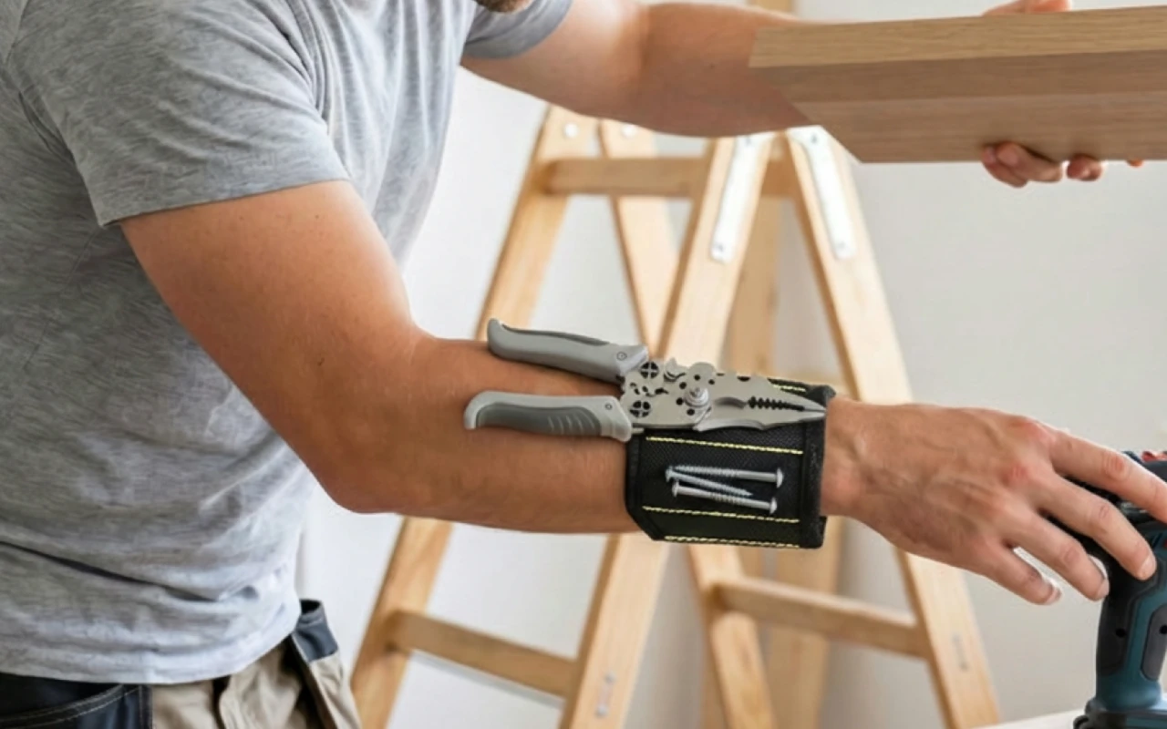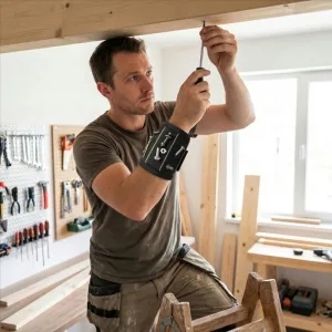 Brățara Ortorex păstrează șuruburile și biții de înșurubat în siguranță, mereu aproape. Magneții puternici împiedică piesele mici să cadă în spatele mobilei. Cureaua ușoară se potrivește majorității brațelor fără să alunece. Terminați mai repede proiectele casnice, deoarece tot ce aveți nevoie rămâne organizat.