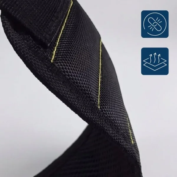 Banda pentru unelte folosește o plasă respirabilă pentru a preveni transpirația și iritațiile pielii. Sistemul de prindere reglabil se potrivește pe încheieturi de toate dimensiunile.