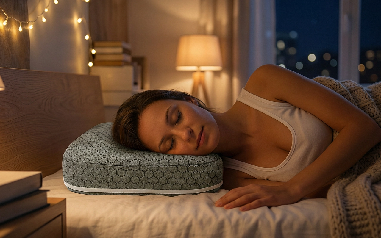 Folosesc căști pentru a adormi, iar această pernă din spumă îmi permite să le port fără să-mi strivesc urechea. Nu mai am dureri dimineața!