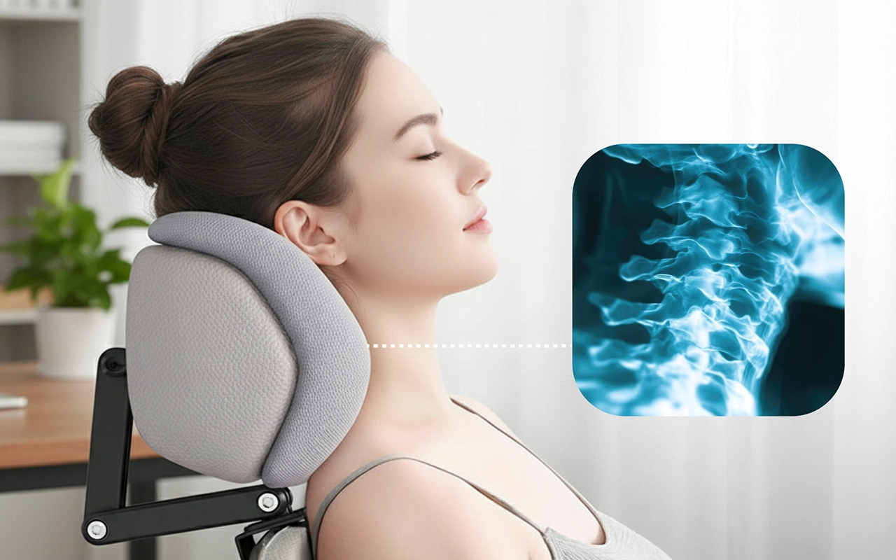 Reduceți tensiunea din umeri ținând ușor capul. Acest suport diminuează presiunea și previne disconfortul cauzat de poziția incorectă pe scaun.