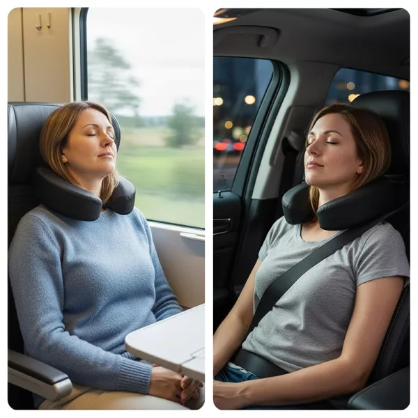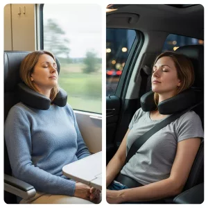 Excursiile mele cu mașina au devenit mult mai confortabile cu această pernă pentru gât. Încape în rucsacul meu și pot șterge fără probleme petele de cafea.