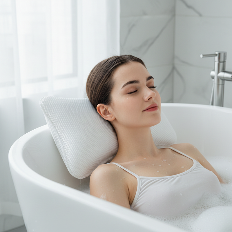 După zile lungi de muncă, această pernă de baie este ca un colț de rai. Gâtul meu stă atât de bine și nu mai am niciodată dureri după o baie.