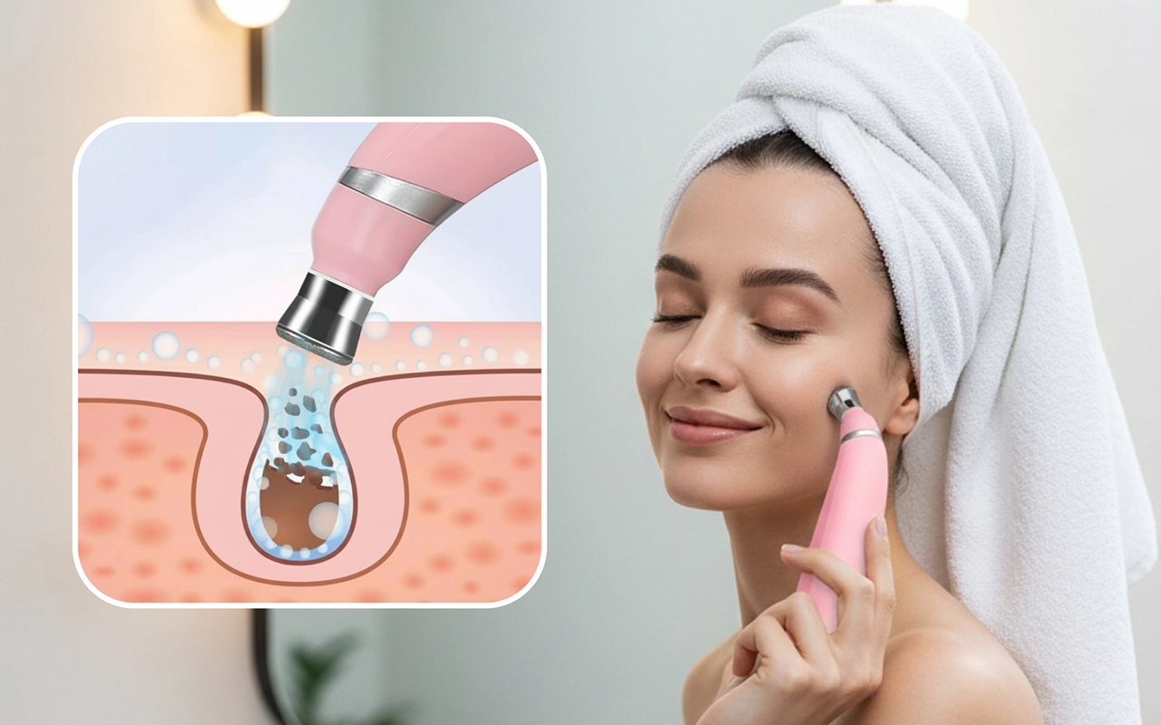 Întotdeauna am avut probleme cu punctele negre de pe nas, dar de când am început să folosesc acest dispozitiv de curățare, sunt mult mai puțin vizibile. E delicat și nu doare deloc.