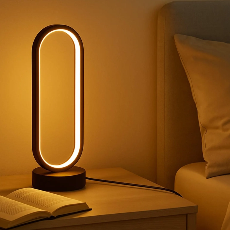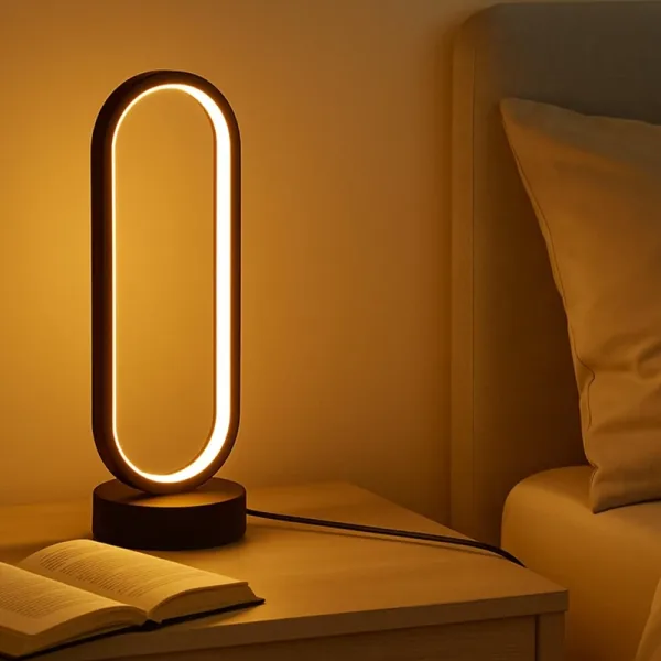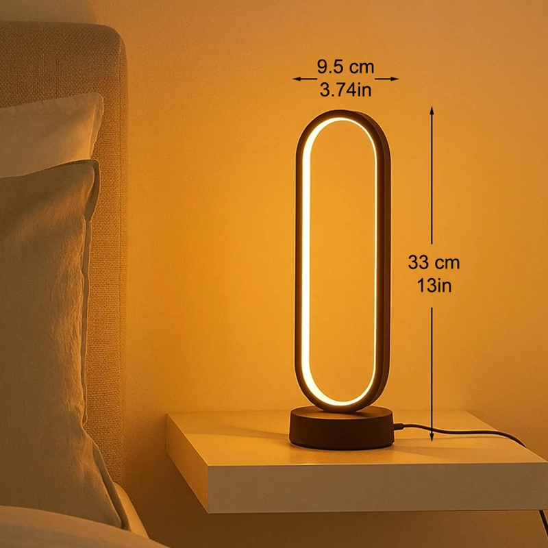 Silveta ovală se integrează rapid în orice stil de casă. Aspectul său elegant adaugă un aer proaspăt noptierei sau biroului.