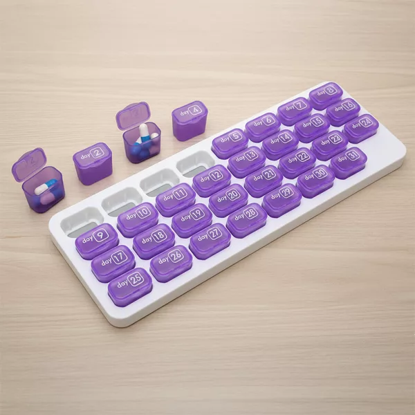 Preia controlul asupra dozelor zilnice folosind capsule numerotate simple. Ortorex face depozitarea vitaminelor și a medicamentelor ușoară pentru toată lumea. Planifică din timp pentru treizeci și una de zile fără confuzie sau stres. Fiecare capsulă păstrează totul vizibil, sigur și protejat pe tot parcursul lunii.