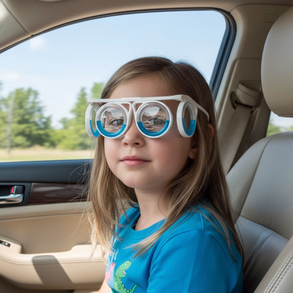 Aceste ochelari mi-au salvat excursia cu mașina. După doar puțin timp, nu m-am mai simțit rău pe bancheta din spate și am putut chiar să-mi citesc banda desenată fără probleme.