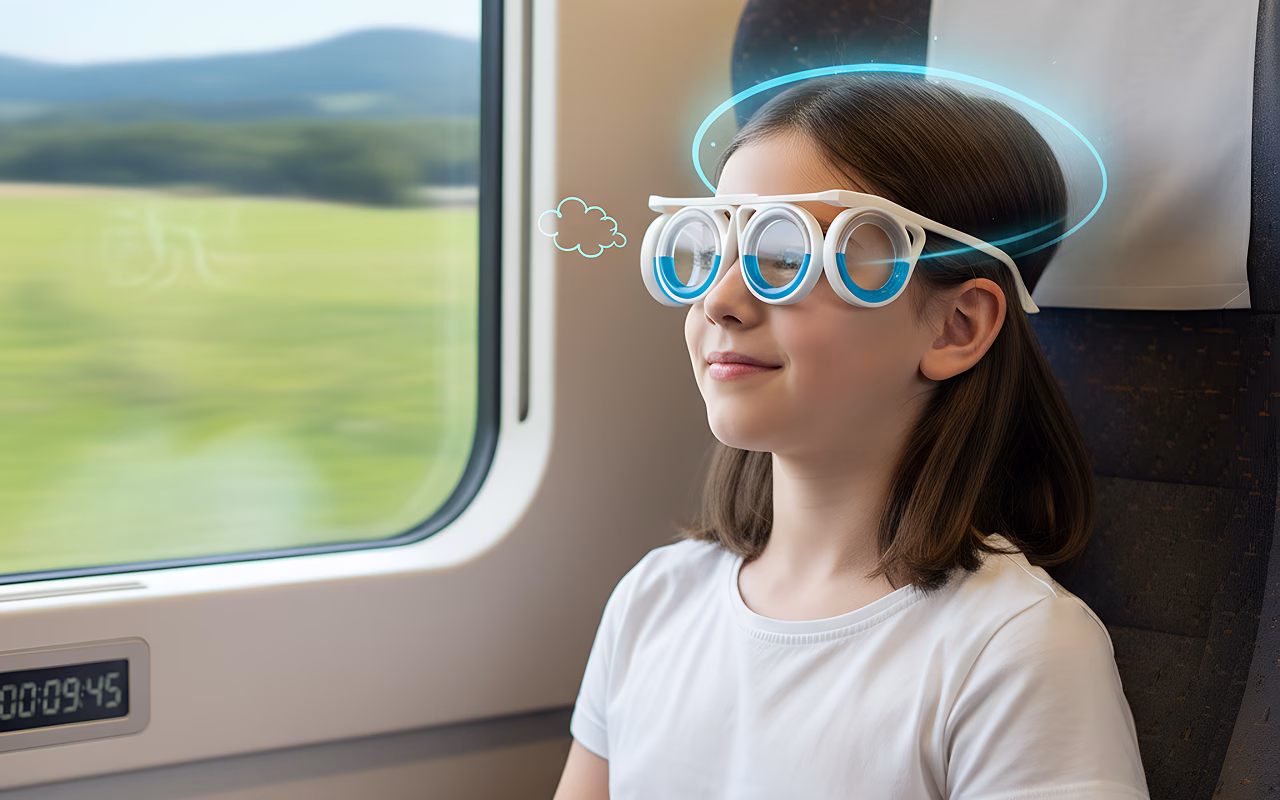 Bucură-te de o călătorie liniștită după doar zece minute. Ochelarii aceștia acționează rapid pentru a ameliora senzația de greață în timpul mișcării.