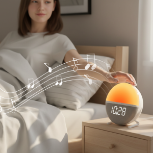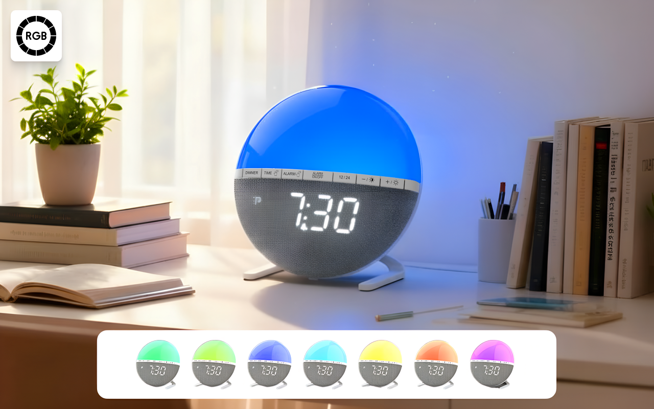 Alege dintre șapte sunete relaxante sau doar lumină de răsărit. Zece niveluri de volum asigură că fiecare găsește rutina perfectă pentru dimineață.