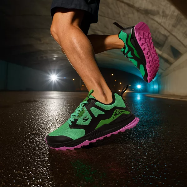 Talpa intermediară din spumă amortizează fiecare pas fără să își piardă forma. Plasa respirabilă permite circulația aerului, păstrând picioarele uscate.