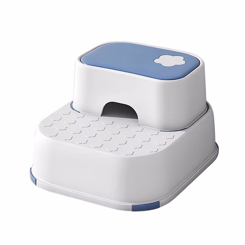 Două niveluri permit celor mici să ajungă cu ușurință la suprafețe mai înalte. Activități precum spălatul pe mâini sau periajul dinților devin simple.