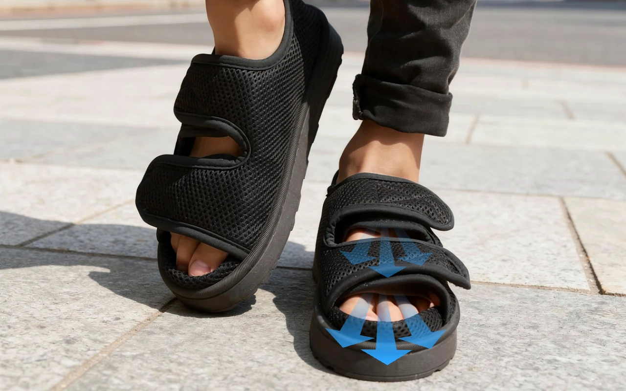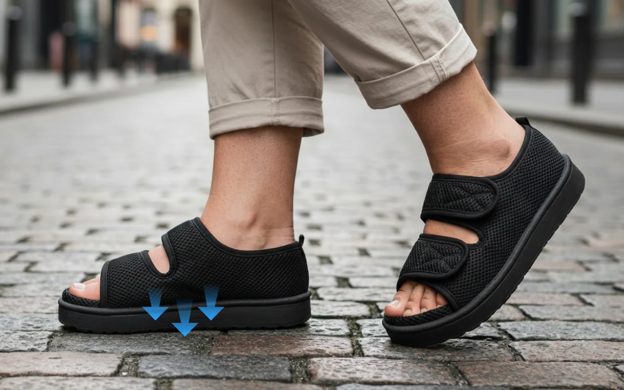 Acești pantofi pentru diabetici m-au ajutat enorm cu degetele umflate. Vârful deschis previne frecarea, iar banda cu scai îi face ușor de ajustat pe parcursul zilei.