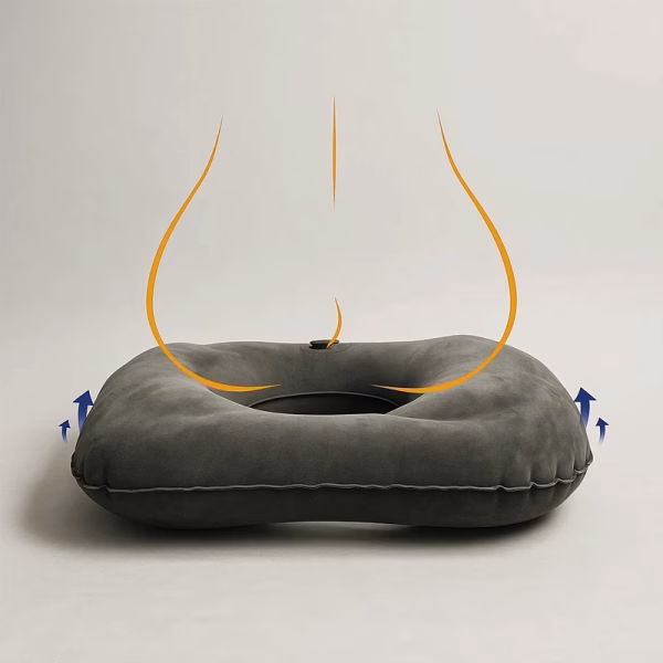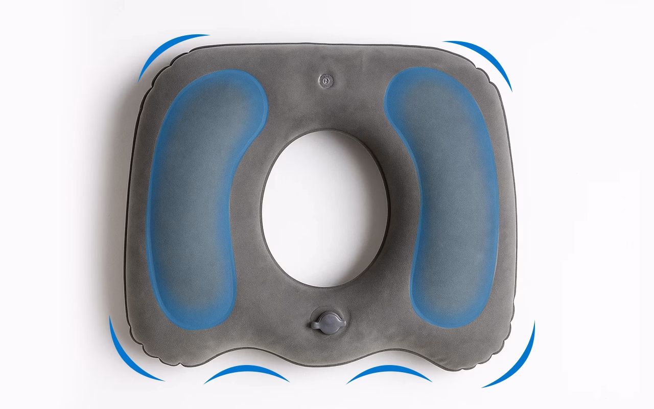Această pernă își menține forma și oferă suport bun pe scaune tari. Ușor de umflat și dezumflat ori de câte ori vreau.