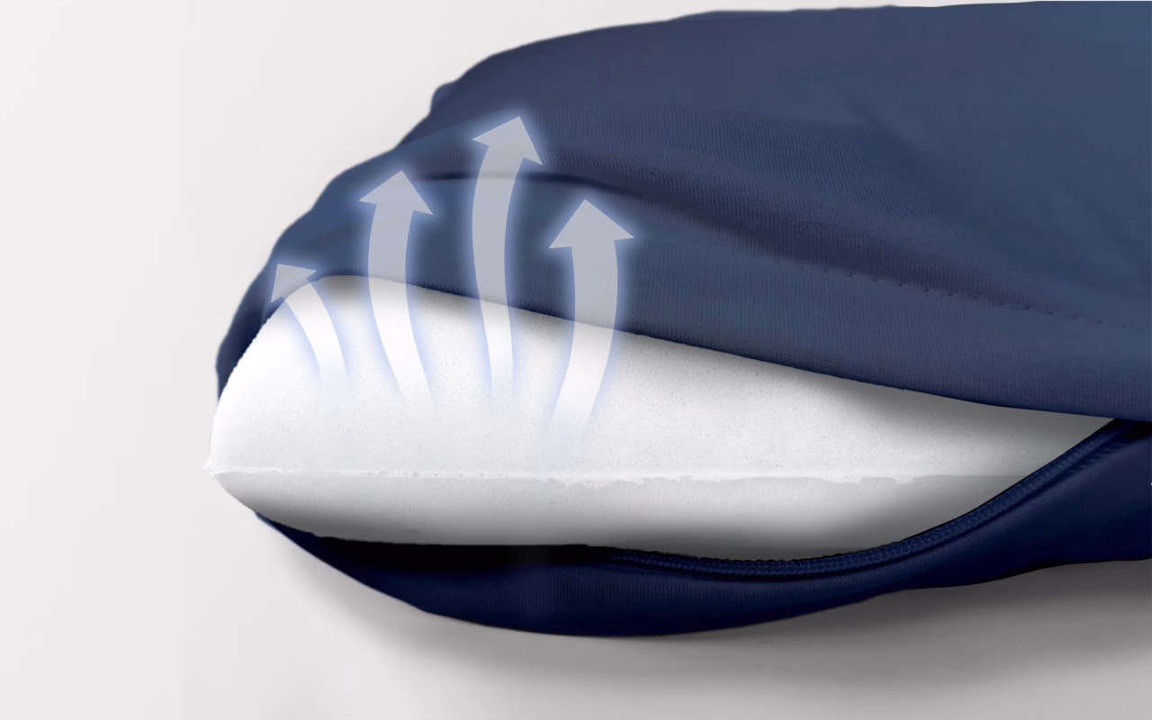 Aerul circulă ușor prin materialul din spumă cu memorie. Dormi mai răcoros și trezește-te proaspăt în fiecare dimineață.