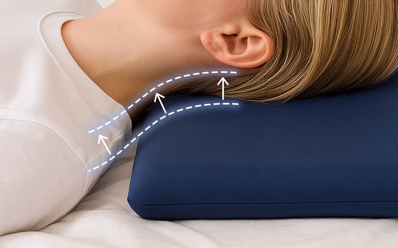 Tensiunea dispare pe măsură ce capul tă se sprijină ușor pe pernă. Aceasta asigură confort pentru gât și partea superioară a spatelui.