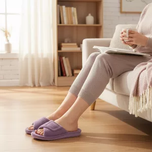 Curelele reglabile oferă o potrivire personalizată pentru orice formă de picior. Fără alunecare sau disconfort atunci când te deplasezi prin casă.