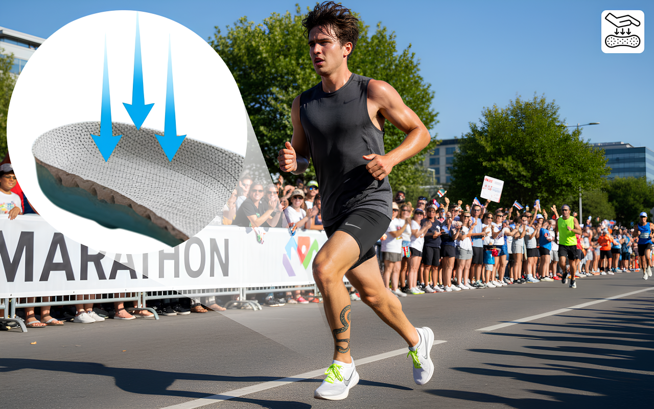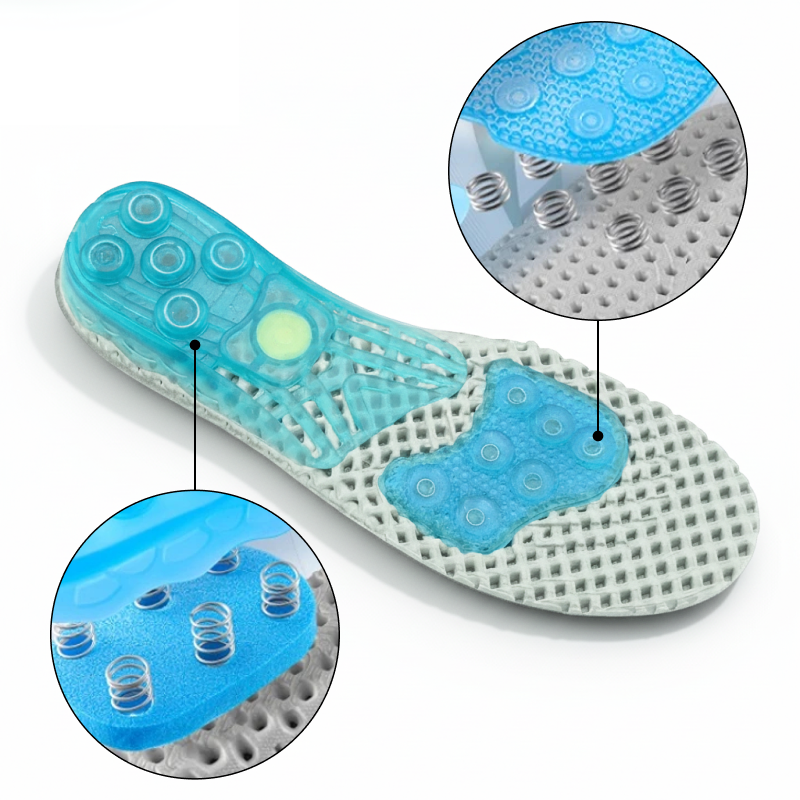 Tehnologia unică cu arc absoarbe șocurile și reduce tensiunea musculară. Ameliorarea apare rapid, ajutând la recuperarea călcâielor și arcadelor dureroase.