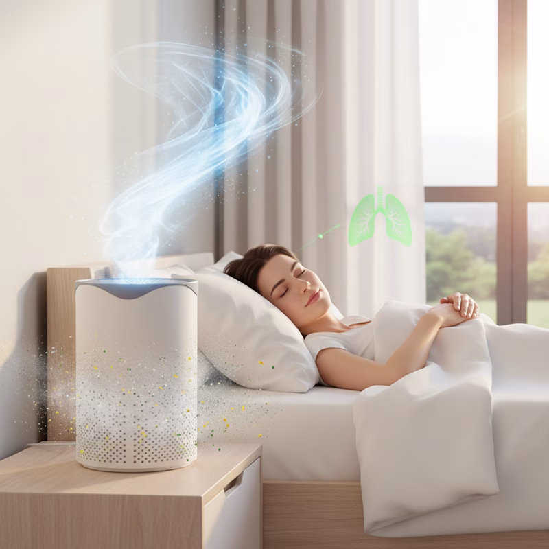 Particulele de praf și polen dispar rapid din aer. Respirația devine mai ușoară, susținând nopți liniștite și zile sănătoase.
