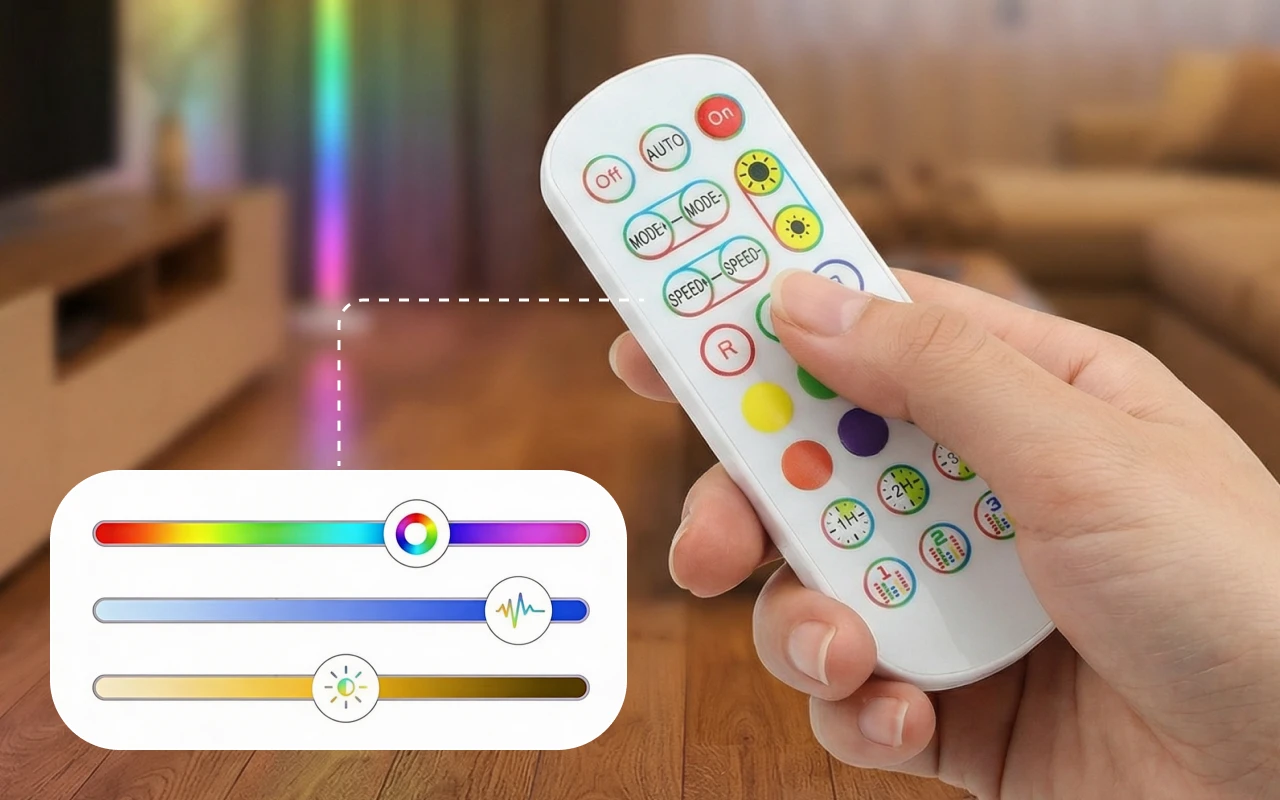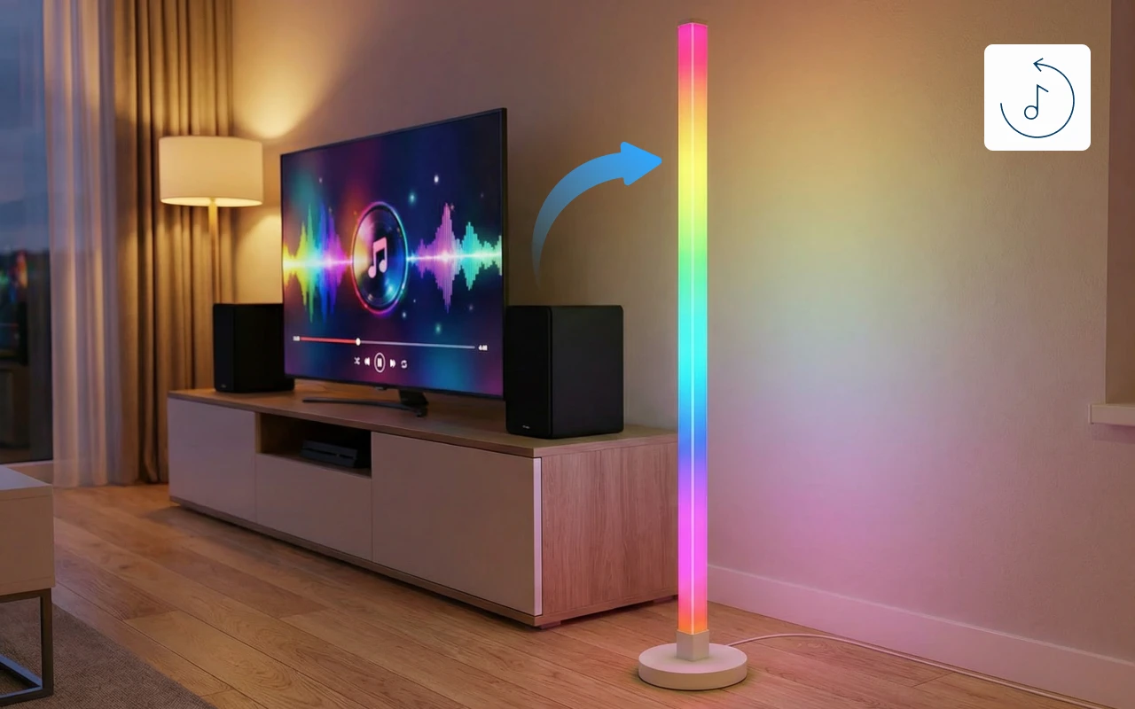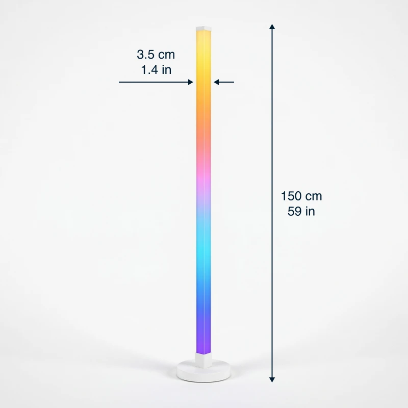 Înaltă și subțire, această lampă se potrivește perfect în dormitorul meu mic. Culorile sunt foarte luminoase și sincronizarea cu sunetul e super.