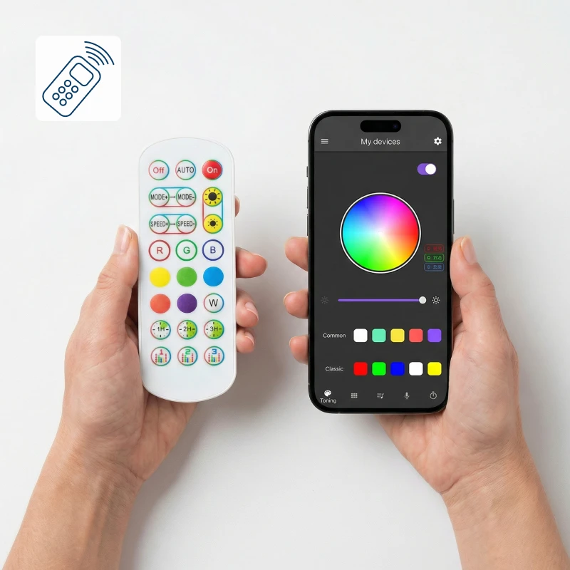 Comută între milioane de culori folosind comenzile simple. Creează rapid atmosfera perfectă pentru petreceri, relaxare sau lucru.