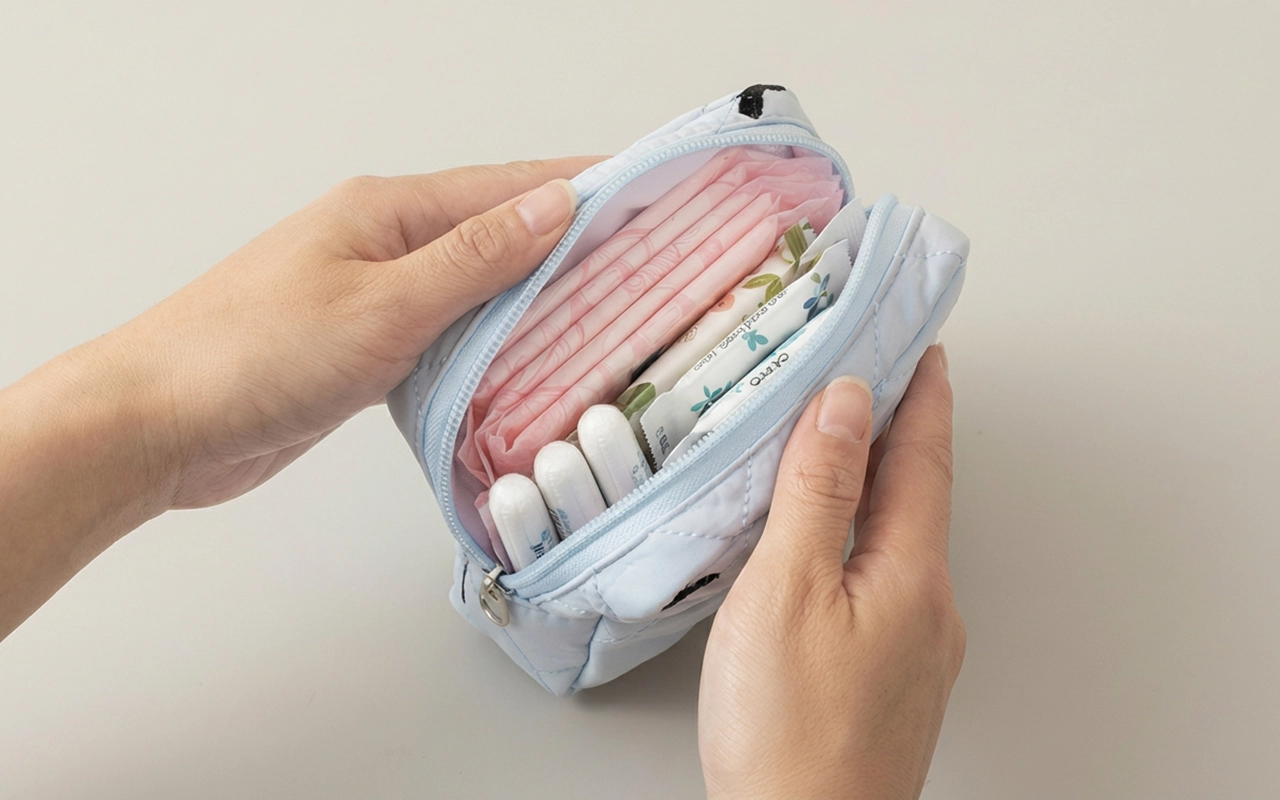 Transportați mai multe obiecte fără bătaie de cap sau dezordine. Pungulița Ortorex ține absorbante, șervețele și alte lucruri esențiale mici cu ușurință.