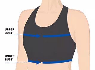 - 2. Pentru a afla măsura sub bust, înfășoară ruleta în jurul cutiei toracice, direct și uniform sub bust.