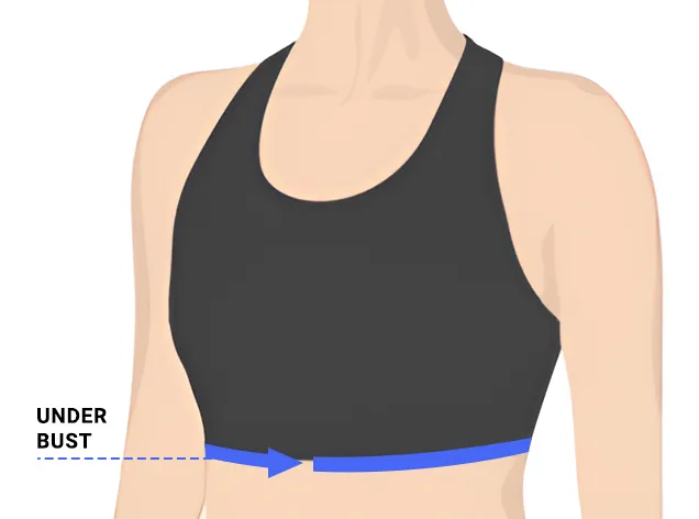 - 2. Pentru a afla măsura sub bust, înfășoară metrul de croitorie în jurul cutiei toracice chiar sub bust, uniform.