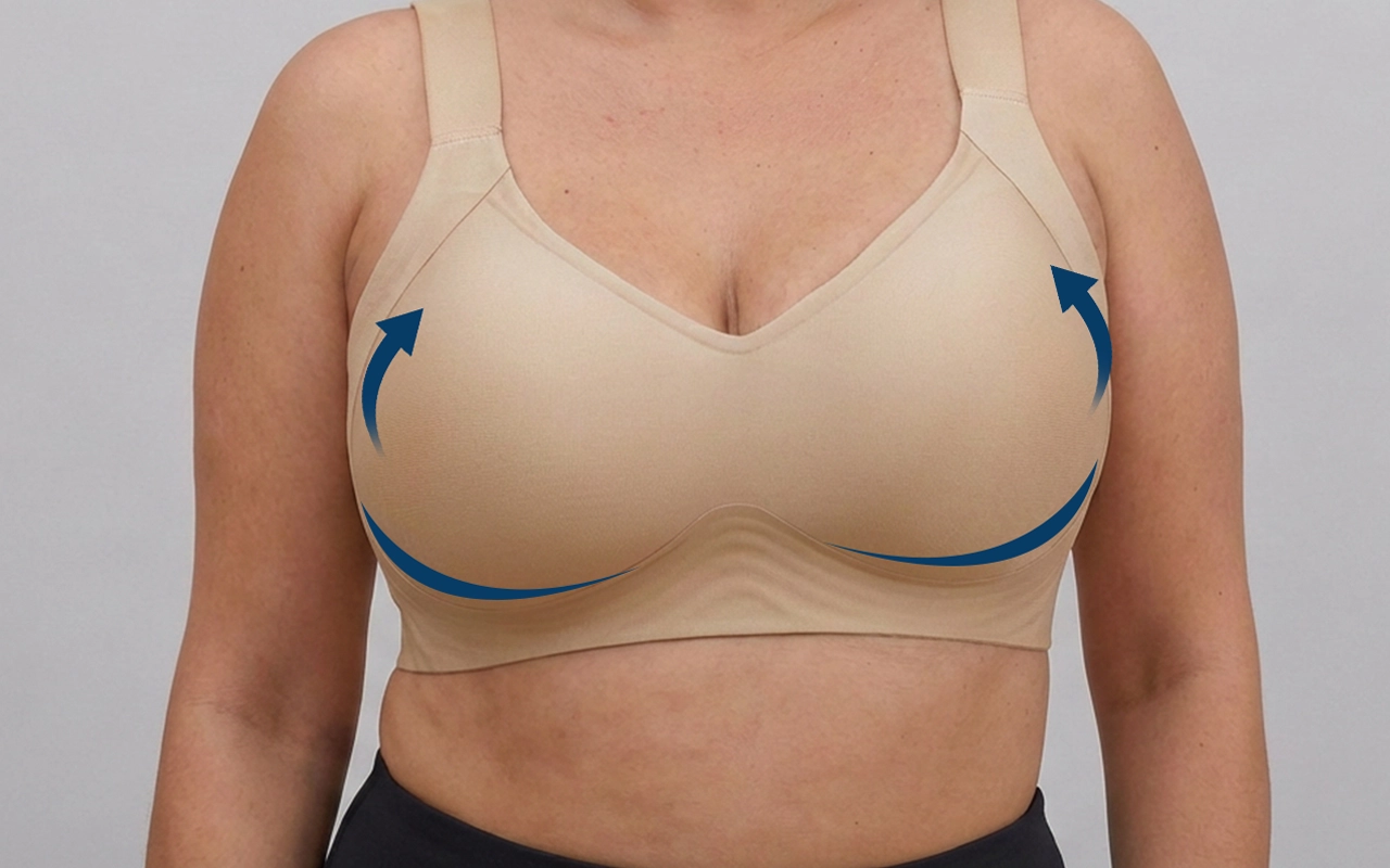 - 1. Înainte de a începe, poartă un sutien fără burete care susține forma naturală — nu o braletă sau un sutien cu burete.