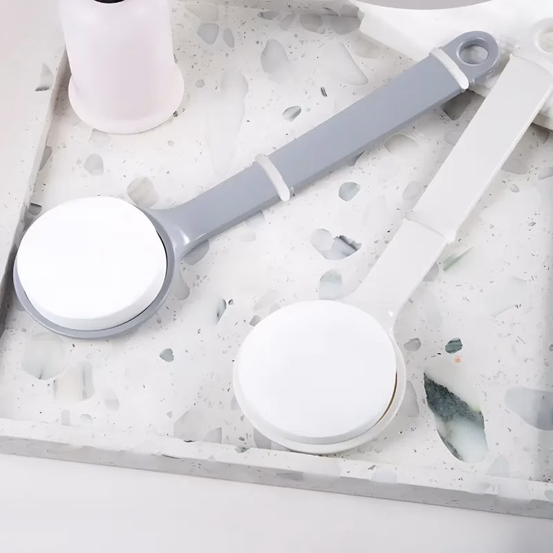 Dacă ai pielea uscată pe spate, acest produs este indispensabil. Rapid de folosit, se depozitează ușor cu bucla și nu îl scap din mână chiar dacă le am ude.
