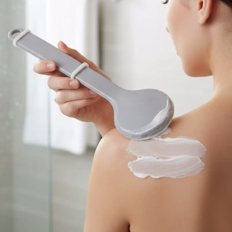 Acum pot ajunge ușor în orice zonă a spatelui! Îmi place că fibrele moi nu absorb toată crema.