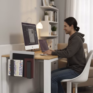 Reduce rapid aglomerația folosind un suport inteligent lângă birou. Bucură-te de mai mult spațiu pentru a lucra, tasta sau scrie fără distrageri.