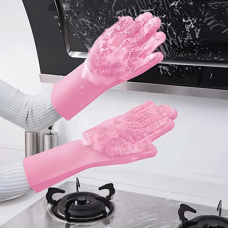 Aceste mănuși cu perii elimină necesitatea periilor sau bureților separați, economisindu-ți timp și efort. Îndepărtează reziduurile alimentare, depunerile de săpun și murdăria în câteva secunde.