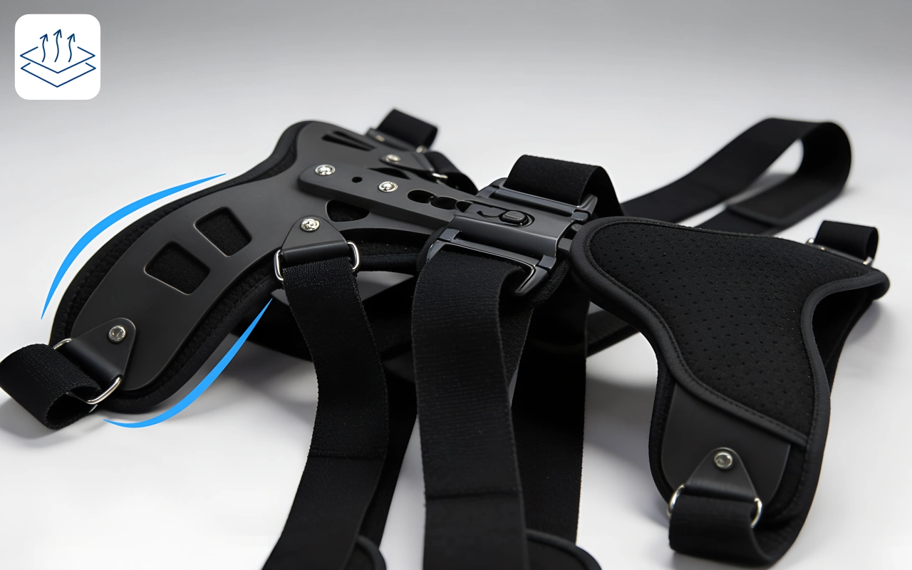 Materialele respirabile permit pielii să rămână răcoroasă și uscată. Plăcile ușoare și tije de susținere oferă confort de lungă durată oriunde.