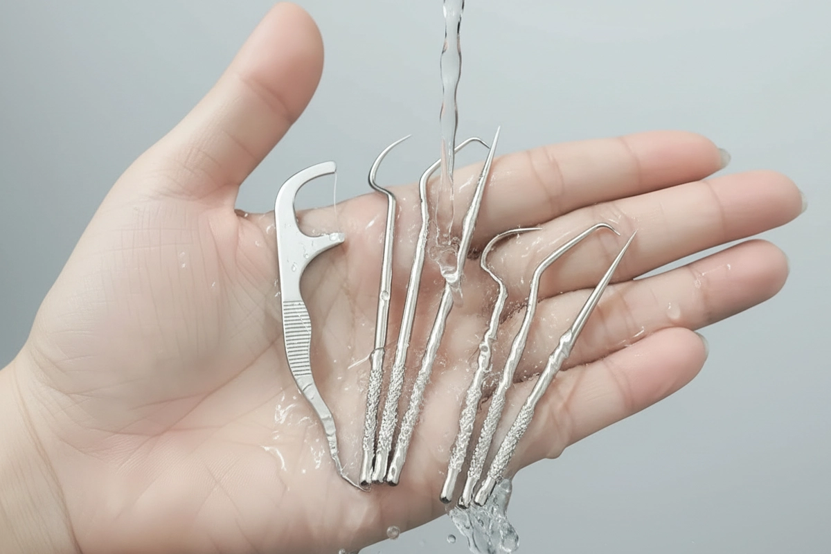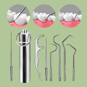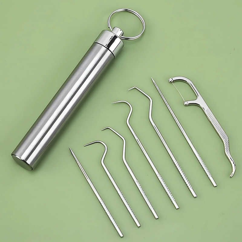 Uită de mâncarea blocată între molari și de momentele stânjenitoare când ești în oraș. Setul din oțel inoxidabil Ortorex încape ușor în buzunar sau geantă. Spală și refolosește fiecare instrument pentru o gură mai proaspătă. Curățarea rapidă și ușoară te face să zâmbești toată ziua.