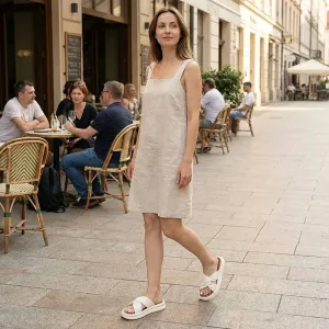 Stau în picioare toată ziua la o cafenea, iar aceste sandale îmi mențin arcadele relaxate. Sunt ușoare, moi, iar micile noduri arată frumos cu rochiile de vară.