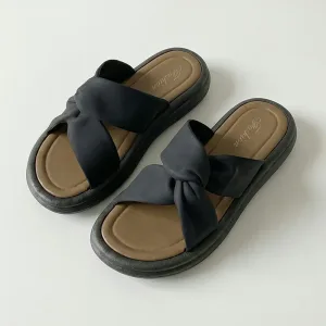 Acestea au devenit încălțările mele de bază pentru casă și mers la cumpărături. Se încalță ușor, se simt moi sub talpă, iar designul cu nod adaugă o notă amuzantă.