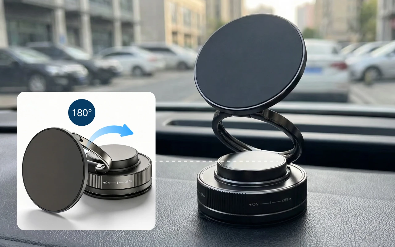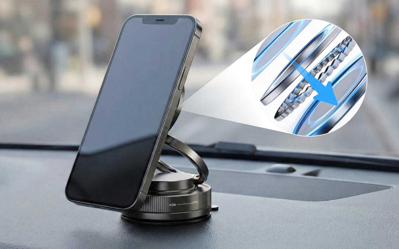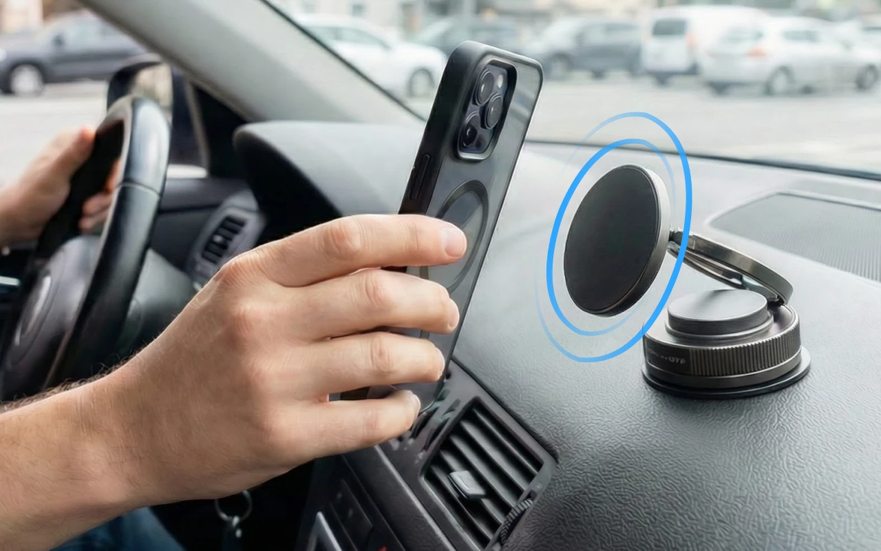 Șaisprezece magneți puternici mențin dispozitivul stabil în orice moment. Smartphone-ul tău rămâne în siguranță, chiar și atunci când drumul este denivelat sau virajele sunt strânse.