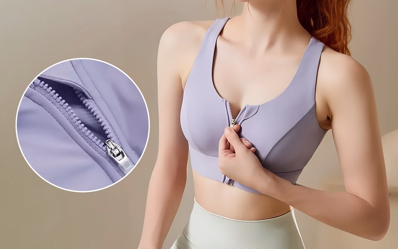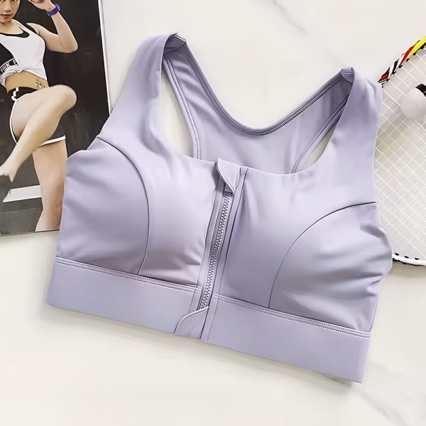 Fermoarul din față face ca schimbarea înainte și după yoga să fie super ușoară. Susținerea menține totul la loc chiar și când sar în timpul cardio.