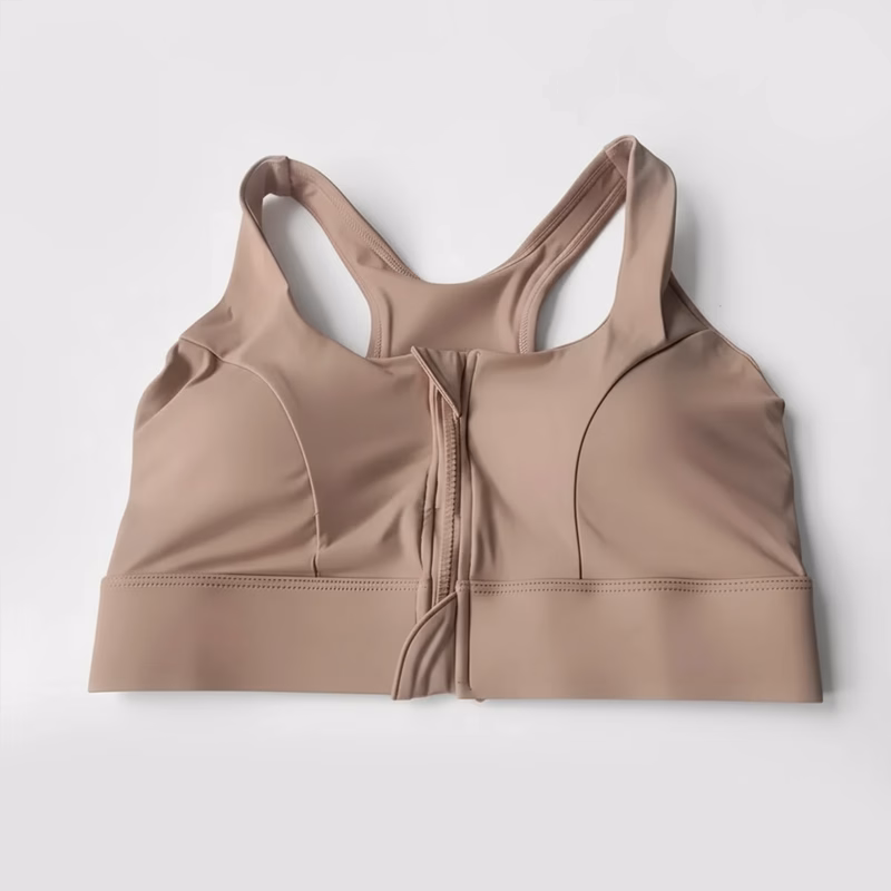 Fermoarul din față face ca schimbarea înainte și după yoga să fie super ușoară. Susținerea menține totul la loc chiar și când sar în timpul cardio.