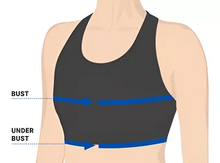 - 3. Pentru a afla măsura de sub bust, înfășoară ruleta în jurul cutiei toracice, direct și uniform sub bust.