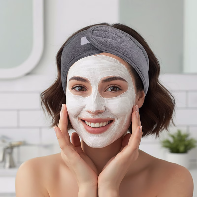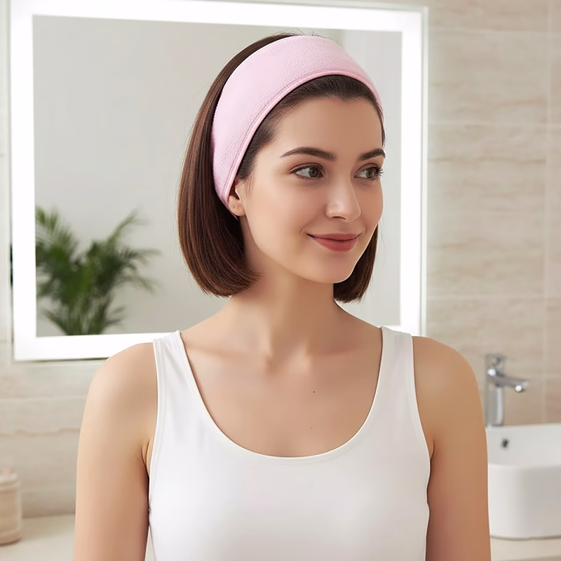 Ușor de curățat pentru baie sau salon. Ține părul departe de față la fiecare rutină de îngrijire.
