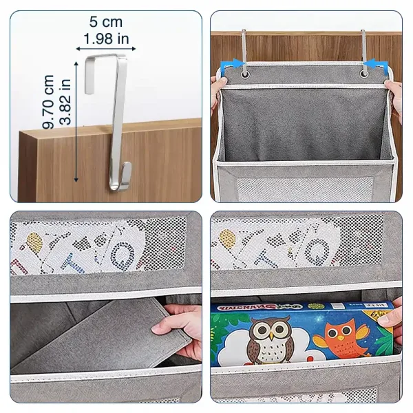 Acest organizator este grozav pentru jucăriile copiilor mei. Animalele de pluș, mașinuțele și cărțile de colorat încap perfect. A fost ușor de agățat și de unul singur.