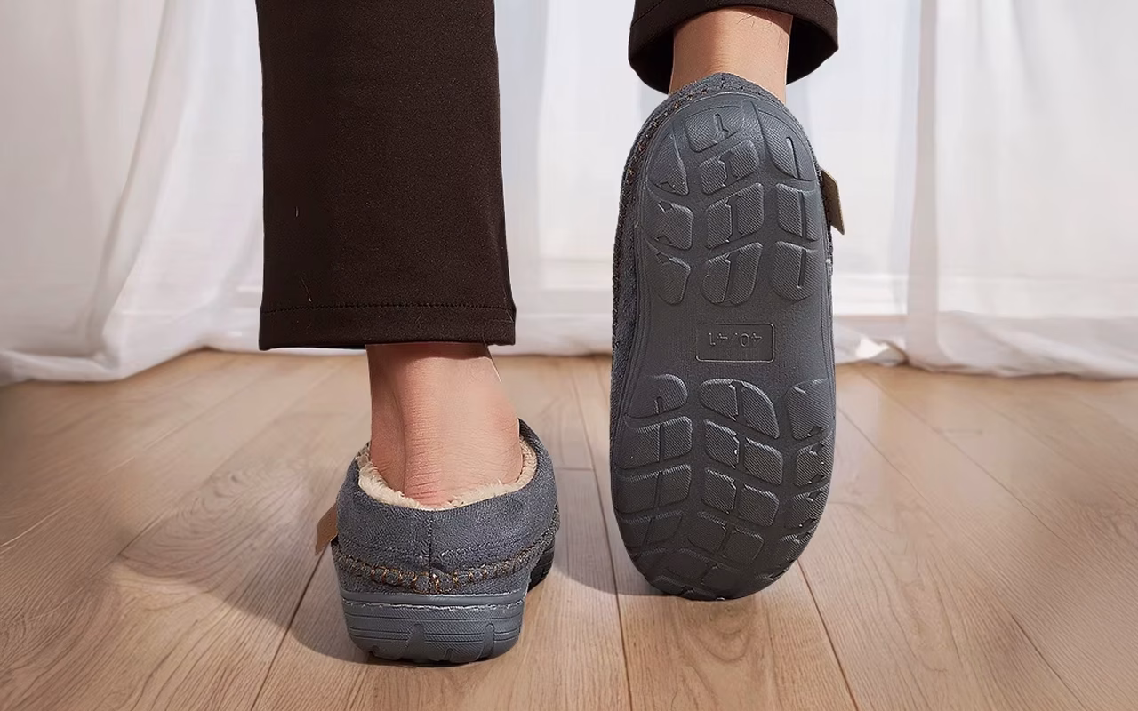 Tălpile antiderapante oferă stabilitate fie că stai, fie că te miști. Mergi în siguranță pe gresie, lemn sau mochetă fără griji.