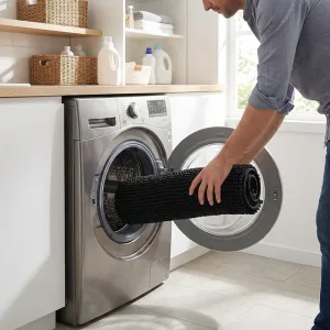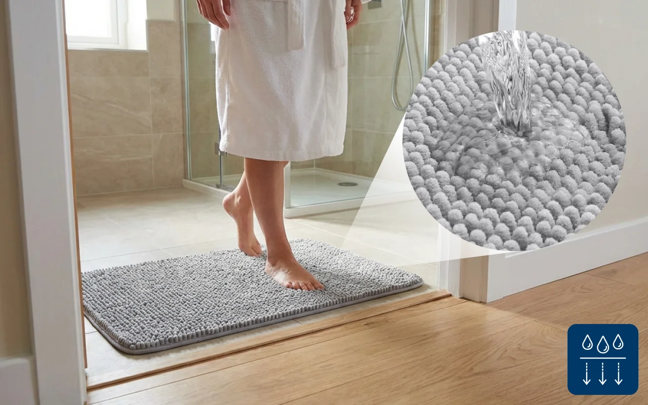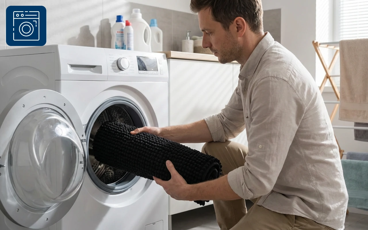 Pune covorașul direct în mașina de spălat pentru reîmprospătări rapide. Iese curat, gata de folosit din nou în câteva minute.
