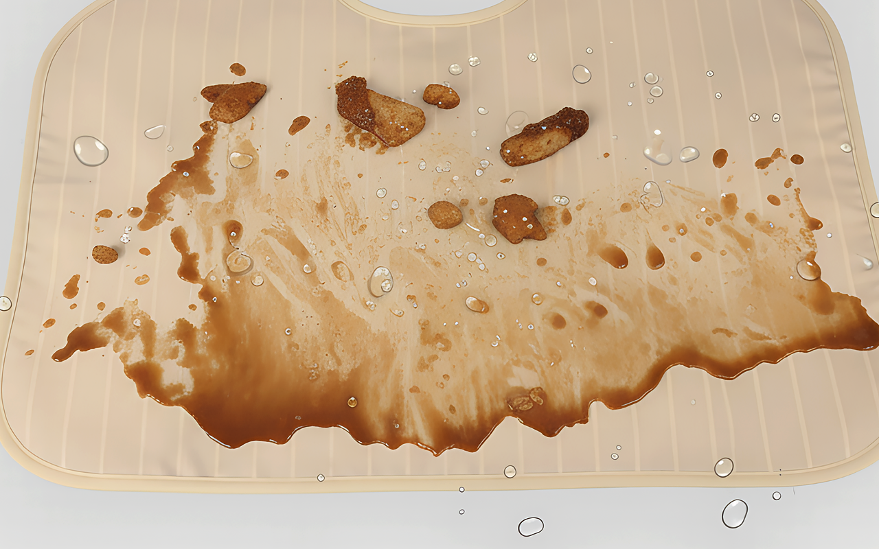 Fără pete sau urme umede după masă sau băut. Straturile impermeabile blochează lichidele și mâncarea să păteze hainele.